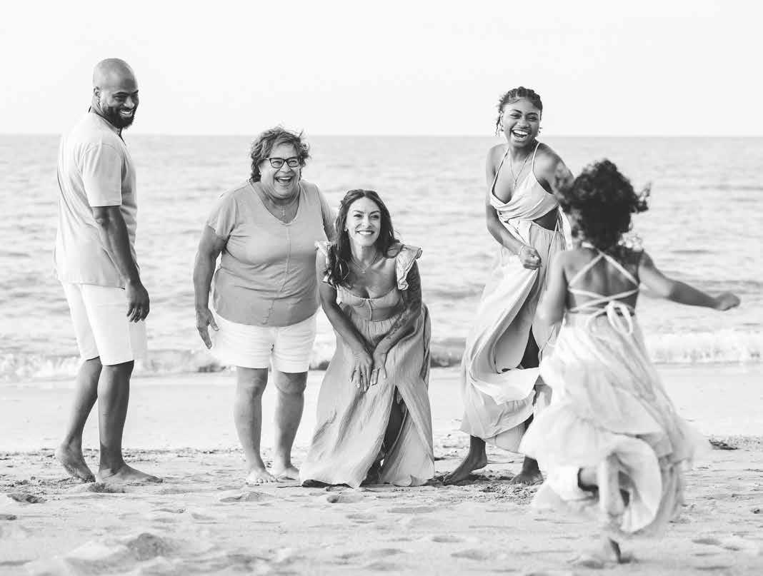 into the heart of her work. Not only is he her partner in life, but he works alongside her on all family and multigenerational sessions, helping capture moments as they unfold. Together they form a seamless team, offering clients both beautifully posed images and candid, in-between moments that give each gallery a rich, complete perspective. Ted’s presence brings an added layer of warmth, patience, and ease to every session as he often works quietly, watching moments unfold in real time. His natural ability to connect with people of all ages combined with Pam’s creativity and photography knowledge, enhances the experience for clients, making each session feel collaborative and comfortable from start to finish. It is also within these moments the pair truly shine, offering reassurance, humor, and a steady presence that helps everyone feel at home in front of the camera. These sessions allow them to preserve the bonds between grandparents, parents, and children in a way that is both authentic and deeply emotional. CONTINUED >