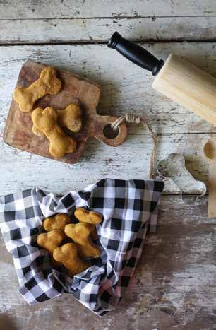 Preheat oven to 350 degrees and line baking sheet with parchment paper. In a bowl, mix all ingredients except flour and blend well. Gradually add the flour until the dough isn’t sticky. Roll dough into a ball. Lightly flour your surface and lightly knead. Use a rolling pin to roll dough to ¼-inch thickness. Use cookie cutters and place dough on baking sheet. Bake for 20-25 minutes. Drizzle with peanut butter (optional).