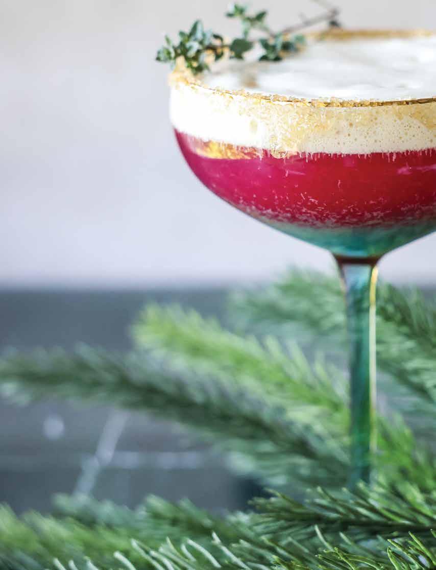 A bright, elegant cocktail with a foamy top and a hint of holiday spirit.