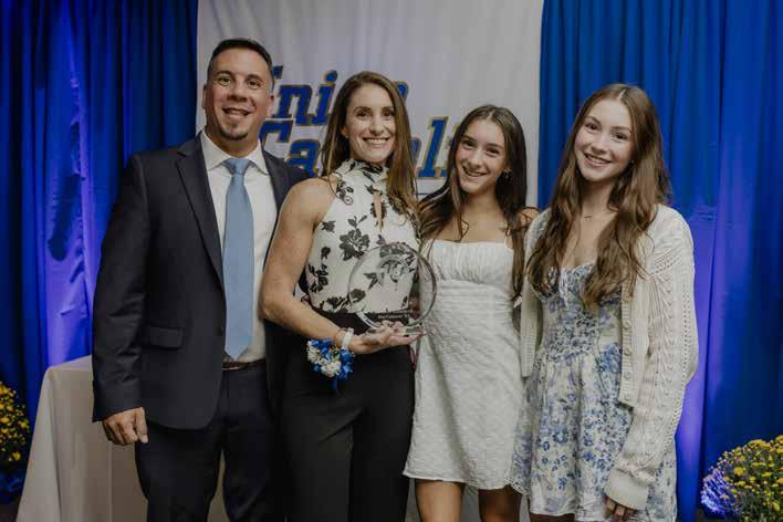 about a person’s true potential. To that end, she has positioned Our House not just as a service provider, but as a community builder. She has emphasized inclusive practices and integration into the community, ensuring that people supported by Our House are not isolated. Rather, they are full participants in neighborhood life. During her tenure, the agency’s services have grown — During her tenure, the agency’s services have grown with the addition of new programs like “Skills Up” which provides training for entry level jobs. She has raised capital to support the purchase and renovation of new residences, including homes in Watchung and Westfield. And she has garnered a deeper bench of social and employment support with corporate partnerships like the one shared with Prudential. And while Michele is the face of Our House, she credits her 350 team members as being the heart and soul of a collective mission. With most employees coming from the healthcare sector, she proudly boasts about the compassionate and caring people that love the work they do. Our House proudly celebrates their 45th Anniversary this year - with a vision for continued growth and opportunity for the IDD community. And in a full-circle moment, Michele was inducted into the Union Catholic Hall of Fame as the 2025 Recipient of The Hero Award for the resounding impact she has made on countless lives. In the audience sit her daughters, Sienna and Aubrey, both current students at Union Catholic (Class of 2026 and 2029 respectively). They beam with pride at their mother, a woman who has taught them the gift of selflessness.