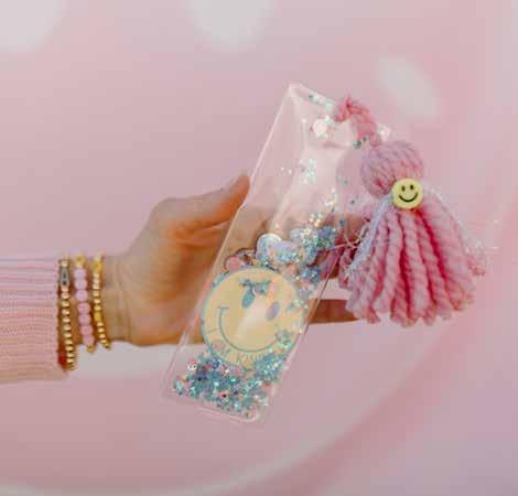 “I created my first glitter shaker bookmark back in 2020, just before my three kids were heading back to school that fall,” she explains. “We had spent so much time together during Covid that everyone was feeling a little anxious about going back and what that was going to be like. We had been practicing positive affirmations at home, and I wanted a way for them to be accessible back at school, so I made my first bookmark with the affirmations inside and added the glitter to make them more exciting.”