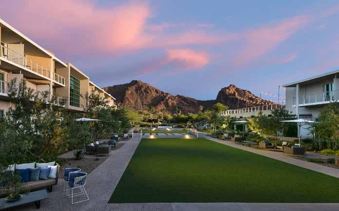 Aptly named Mountain Shadows (MountainShadows.com)—it stands in the shadow of Camelback Mountain—this storied resort has both a richly historical past and a celebrated future. The original destination was built in 1959 and drew everyone from international travelers to Hollywood stars such as Liz Taylor and The Monkees. By 2004, it had closed its doors, and in 2014, it was demolished. In 2017, it reopened, rebuilt with sleek designs that capture both the essence of the property and the same stunning views of Camelback.