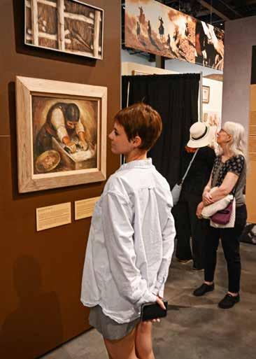 We have more than 70 artworks on exhibit, so it’s impossible to pick just one. But two special items are Mac’s personal scrapbooks from her youth in Ohio. We’ve digitized these for visitors to explore, page by page. They’re filled with magazine clippings of cowboys, horses, and rodeo stars, but arranged creatively, with some sketches and annotations. It’s a charming glimpse of the great Western artist that Mac would soon become.