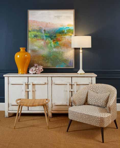 • “You can’t go wrong with fresh flowers,” Hannah says, “but keep bouquets low to not interfere with conversation flowing. For fall, I like richer, jewel-toned florals to mix and match and keep whimsical. I vary glass vases with bur - nished brass for warm fall vibes.”