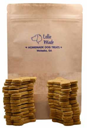 Elizabeth Hughes and her husband Shea expanded their family a decade ago when they adopted their fur baby Lollie Mae. “Like any parent, we wanted the very best for our girl. I started making her simple treats with prime ingredients.” Elizabeth used the pumpkins they grew on their land in Waleska, GA, peanut butter, and whole wheat flour – plus a fourth ingredient: Love. The results were too good not to share, and their small business Lollie Made was born. “We stamp every single treat in the center with a heart! It is time consuming, but the heart symbol means a lot to me.” Lollie Made treats have rewarded countless good girls and boys – all because of the very best girl of them all.