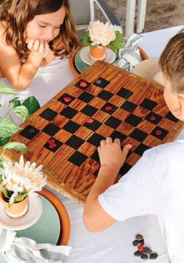2. Game Board: For raw wood (such as our Tic-Tac-Toe board), use a ruler and black paint marker to create board lines. For reclaimed or treated wood, use paint. Let game pieces and game boards fully dry. Seal with a polycrylic spray for protection from heat and moisture.