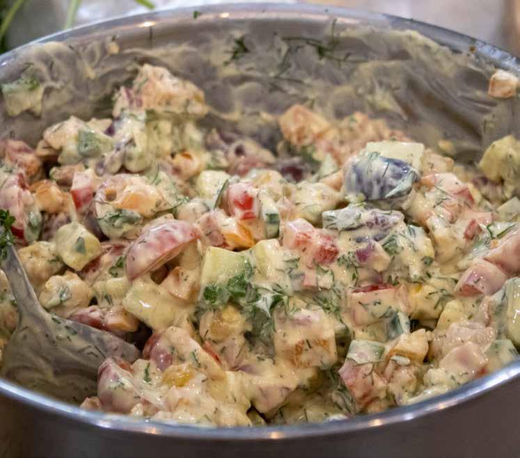 3. In a separate bowl, whisk together Greek yogurt, lemon juice, zest, Dijon mustard, dill, and Sisi Lola’s Greek seasoning until well combined to make the “Dilly” salad dressing.