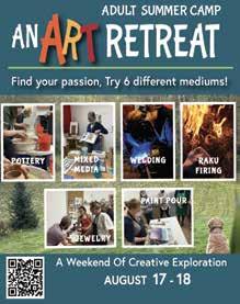 Get ready for an exciting weekend getaway to explore various art forms, meet new creative people, and immerse yourself in a fun, enriching experience. Enjoy catered meals, hands-on workshops, and campfire fun! Try Welding, Jewelry, Pottery, Painting and A Raku Firing experience, all at the Burkhead Art Center. Learn more at www.burkheadartcenter.com.