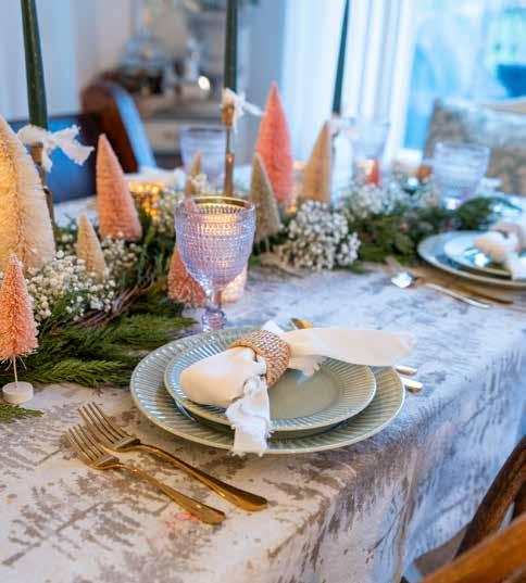 This year, I also embraced a non-traditional tablescape, layering warm candlelight with soft pinks and fresh cut greens, rattan napkin holders, and delicate sprigs of baby’s breath. A reminder that Christmas doesn’t have to follow the rules, it can be a blank canvas for artistry and creativity.