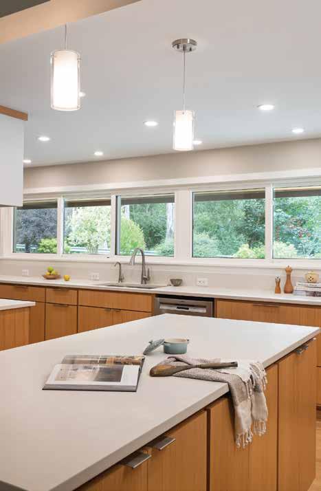 “The big open concept room really highlights the expansive outdoor views,” she says, “but making intimate spaces within that open room was really important.”