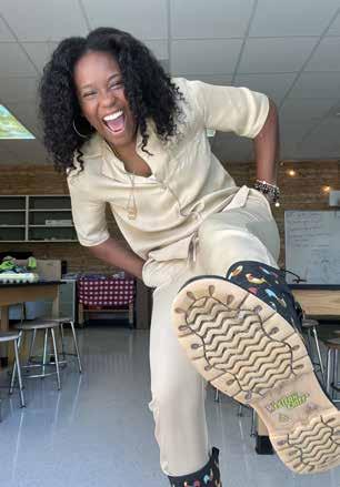 "IN MY ROLE AS AN EDUCATOR," SHE SAYS, "I SERVE AS A 'MIRROR' TO MY STUDENTS OF COLOR, SO THEY SEE THE VALUE AND POWER OF EDUCATION AND A 'WINDOW' TO OTHER STUDENTS AND STRIVE TO DISMANTLE STEREOTYPES, WHILE HELPING ALL OF MY STUDENTS REALIZE THEIR POTENTIAL."