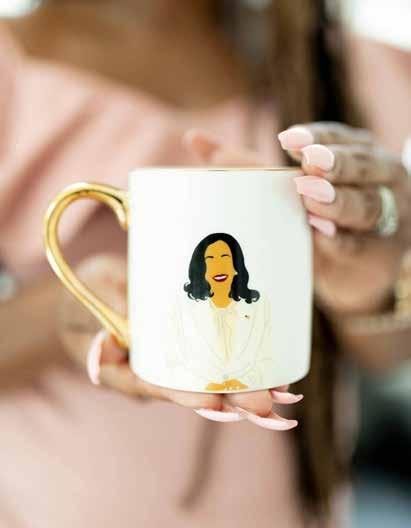 Fall also marks election season. Enjoy sipping hot chocolate or tea in a gold foil mug featuring your favorite power women: Kamala Harris, Stacey Abrams, and Michelle Obama.