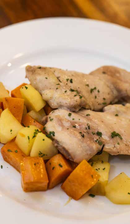 ROASTED CHICKEN THIGHS WITH APPLES & SWEET POTATOES