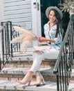 When asked about must-have items, Vitollo lists a few staples: "Every woman needs some type of Oxford button-down, a pair of great jeans—straight-leg is still in style—and a basic sweater. Trench coats are making a return, and scarves are a chic accessory. Footwear trends include stilettos, kitten heels, and classic white sneakers."