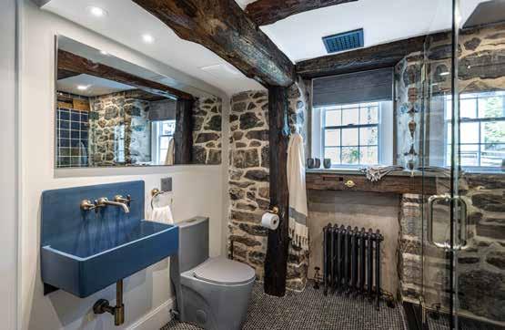 The farmhouse presents unique challenges. Van-Go's leadership involves multiple trades, including excavation, drainage, stonework, pointing, framing, roofing, mechanical work, hardwood floors, and custom carpentry. Craftsmanship extends to restoring original windows, doors, and custom trim work. "We replace old components with locally sourced vintage beams, ensuring everything looks authentic," Georgoutsos adds.