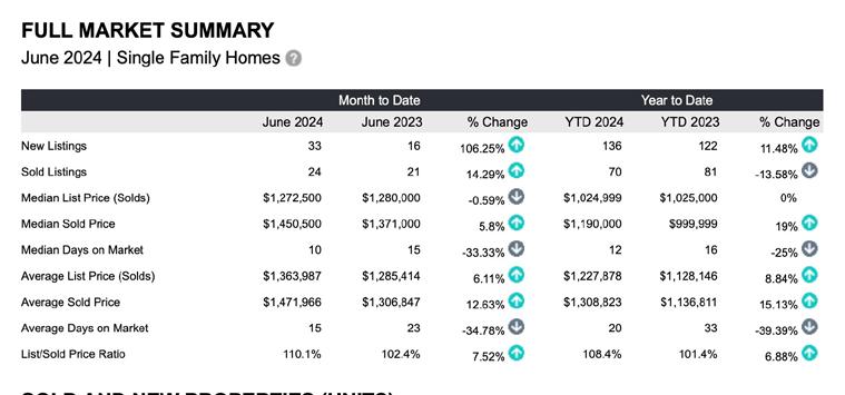 Since 2020, we haven’t really experienced a seasonal market. Rather, it’s been a short supply of available homes that created high demand. Number of homes for sale barely broke into the teens all year. In June, we rose to over 30 available, and now, near the end of July, we’ve surpassed 40 In a slight reversal of trend as evidenced in the char t below, year over year, single family home listings are up 11% and sales are actually down 13% Are we ever so slightly transitioning? There are some key indicators that contribute to some homes staying on the market while others literally sell in a weekend There are also external factors in play that are influencing the market including confusion over new regulations, disappointment in rates not dr opping as anticipated, and fatigue from the frenzy Make no mistake - at this juncture in July, our market remains healthy However, like the first reddened leaves of Autumn, there may be signs of change to come I’d be happy to discuss this in greater detail Don’t hesitate to call, or subscribe to my newsletter