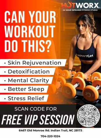 To schedule a tour and free workout, visit www.hotworx.net/studio/indiantrail-sunvalleycommons or call 704-220-1024. Also follow @HOTWORXIndianTrailSunValleyCommons on Facebook and Instagram for updates and special announcements. HOTWORX is located in Sun Valley Commons at 6467 Old Monroe Road.
