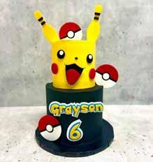 Chocolate cake with cookies and cream filling, decorated in yellow and black buttercream, custom acrylic Pokeball decor.