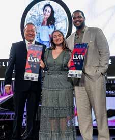 The American Cancer Society’s Inaugural Las Vegas Game Changer Gala 1: Local cancer survivor, cancer advocate, and radiation therapist, Shelley Valladares-Burke accepted surprise Super Bowl tickets. 2: A live auction and paddle raise was enjoyed with the help of renowned auctioneer, Christian Kolberg. 3: The gala was hosted by Ian Rapoport and Patranya Bhoolsuwan. 4: The entrance was head-to-toe artwork by local Pretty Done, lined by all the evenings honorees. 5: Kim Frank, President of the Vegas Golden Knights Foundation, was an honoree at the event. 6: Guests enjoyed a photo booth in between presentations. 7: Will Gholston, NFL player on the Tampa Bay Buccaneers, participated in the live auction.