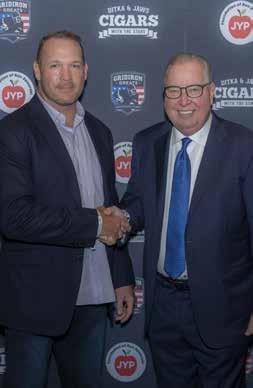 The Ditka & Jaws Cigars with the Stars Party: 8: Dr. Oz joined in on the fun. 9: The two hosts enjoyed the evening among many vendors in attendance. 10: Hosted annually by football legends Ron “JAWS” Jaworski and Brian Urlacher. 11: Ron Jaworski marked the official commencement of the Big Game week with the star-studded event. 12: The party included an elite gathering of celebrities and big names in football. 13: A signed Dan Marino Jersey was auctioned off to support the Jaws Youth Playbook and Gridiron Greats Assistance Fund.