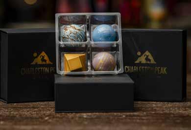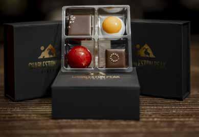 Winery team members note that the dark chocolate selections are a favorite, as they work well for dairy-restricted diets. All chocolates are handmade and hand-painted. For those who want more, there are four more chocolates to explore, and with the help of winery staff, more pairings. For those that prefer a bite before the sweets know that the owners of Charleston Peak Winery also own Amari Italian Kitchen so there is a special curated menu of dishes to go with wines by the glass or flight. Overall, the wine tasting menu includes two sparkling wines, five whites, two rosé, four reds, wine cocktails, and mocktails.