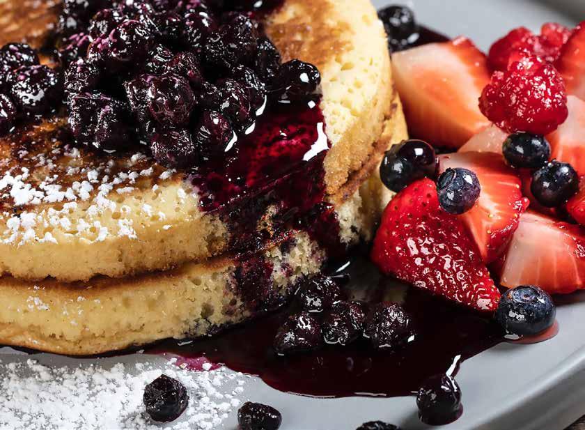 "Our lemon poppy pancakes have turned into a house favorite," he states. "Light fluffy 'souffle' style pancakes with a topping of fresh blueberry compote and tart but sweet lemon poppy drizzle."