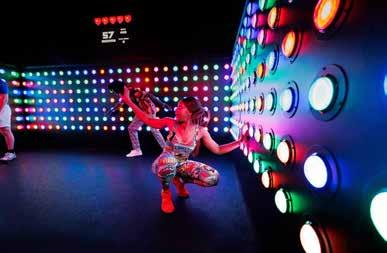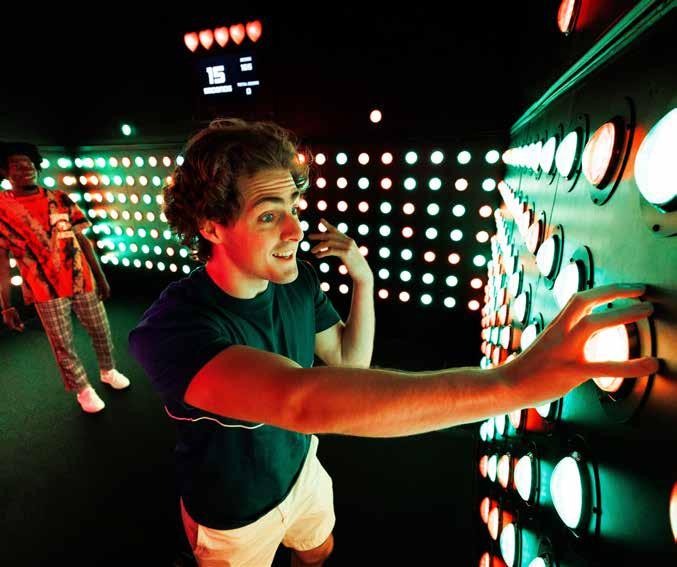 At Activate, you’ll find a selection of interactive, light-up game rooms designed to test your physical and mental agility. There are portals to explore; a reimagined game of hide-and-seek; a technicolor basketball court; dip-and-dodge laser fun; and a neon-lit rock wall where each button represents a rock hold and every level increases in difficulty as you travel across the room and complete different challenges along the way. A super grid light-up floor tile game tests your hand- and footwork and your ability to multi-task as you move in time to lighting challenges. And there are other fun options to explore.