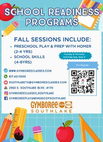 Monday, Sept. 2, 10 am-3 pm, $20/child. Gymboree Play & Music of Southlake will have extended Open Gym in lieu of classes. Everyone with little ones 0-6 years old is welcome to attend for playtime. Call 817-421-9300 to make your reservation.