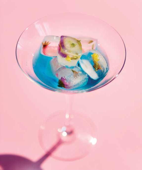 BOLD COLORS . Fresh florals. An eye-catching shimmer. The perfect embellishment. We’re talking cocktails, not the catwalk. But like fashion, the art of mixology is full of ways to push the limits with creative twists on classic recipes, and unique adornments guaranteed to turn heads. There’s no reason your personal style can’t extend to the drink in your hand, and this botanical beverage is bound to taste as delicious as it looks.