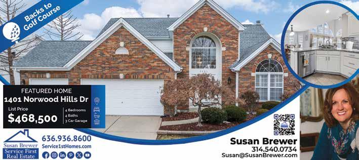 314.540.0734 SusanBrewer.com Susan Brewer find Susan on your favorite social media VOTED BEST REALTOR in St Charles County 13X AWARDED TOP REALTOR IN ST CHARLES COUNTY $750+ MILLION career sales volume