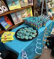 8: Emma Husberger, Chelsie Schuette and Jess Townes at Main Street Books for Bluey-themed event. 9: Emma Hunsberger reads aloud from SLEEPYTIME, a Bluey picture book at Main Street Books 10: Blue sprinkle cookies from Grandma’s Cookies at Main Street Books Bluey themed event.