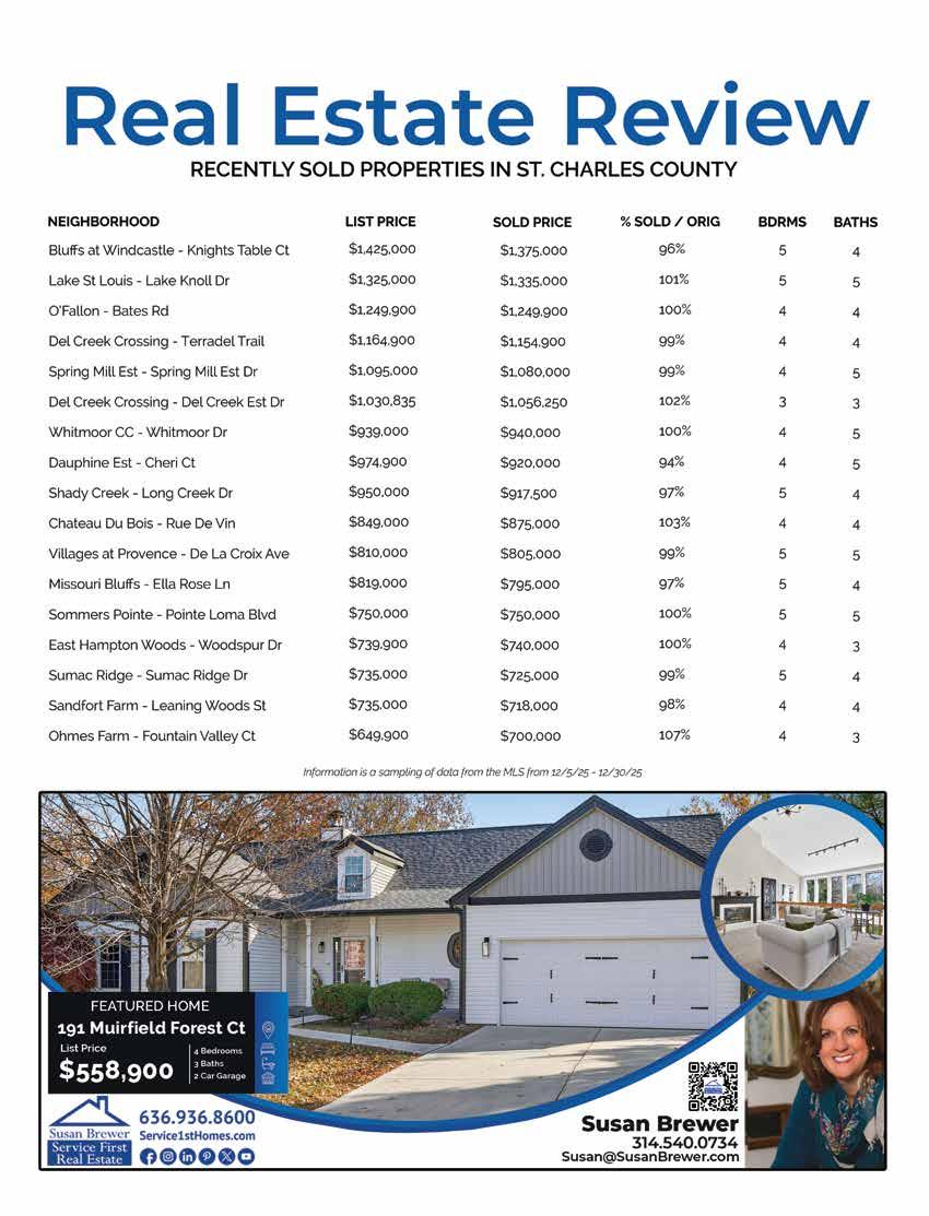 1: Guests crafted holiday floral centerpieces during The Flower Stop’s seasonal class at Frankie Martin’s Beer-Barn. 2: St. Chux Derby Crew collected 930 items for St. Louis Area Foodbank. 3: Chris Slyman of Slyman Bros Appliances named to NKBA Thirty Under 30 Class of 2026. 4: Publisher, Gordon Montgomery introduces Rick Shuler at The Factory for the John Denver Tribute Concert. 5: Cottleville Mayor Stephen Thompson sits down with publishers Kelley and Gordon to talk about 2026. 6: Kimberly Zander, owner of K. Zander Jewelry, poses in her new Chesterfield District storefront. 7: Defiance residents attended a Christmas pop-up hosted at Sugar Creek Winery