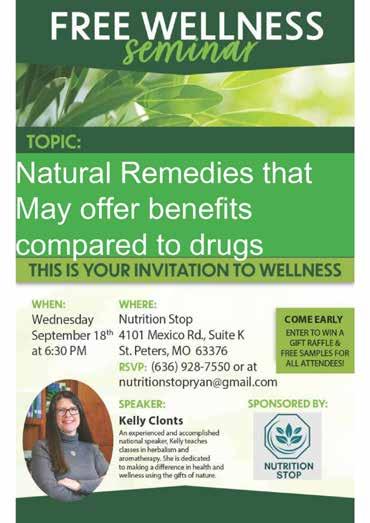 Drop in any time during the class from 4-7 p.m. to create leaf rubbings using rubbing plates, leaves and crayons, while supplies last. No pre-registration required. Children must be accompanied by an adult. On Sept. 28, the craft at the same location will be Fall Handprint Art from 2-4 p.m. For questions, call 636.204.5395.