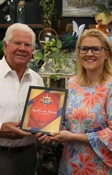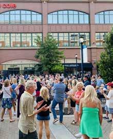 4: April’s On Main team serving up smiles and beverages at Music On Main street. 5: Tony’s Restaurant grilling delicious burgers for the crowd at Music on Main Street. 6: Mayor Dan Borgmeyer presents April Moxley 10 year Anniversary Milestone Award to Aprils On Main. 7: Guests danced to the sounds of Russo & Co. at the Beale Street Concert Series.