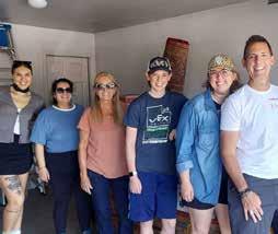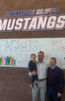 1: Members of the Rebel Jazz Band play for the Warbird Museum Hangar Dance. 2: Eric Dowdle with his large Washington City mural commemorating the grand opening of Whammers. 3: Crimson Cliffs Middle School Principal, Brian Stevenson, is awarded Middle Level Principal of the Year. 4: The Zonos team volunteers at Neighborhood Connection to assemble pantry packs. 5: Coyote Tales Founder, Victoria Topham, and "Master-of-Sharemonies," Doug Caputo, with Coyote Tales at Kayenta. 6: Paula and Joe Ferrario debut their toe-tapping original Coyote Tales theme song at Kayenta. 7: Musicians Garth, Kelvin and Bob Nisson add star power entertainment at Eric Dowdle unveiling.