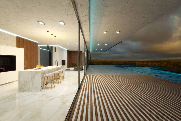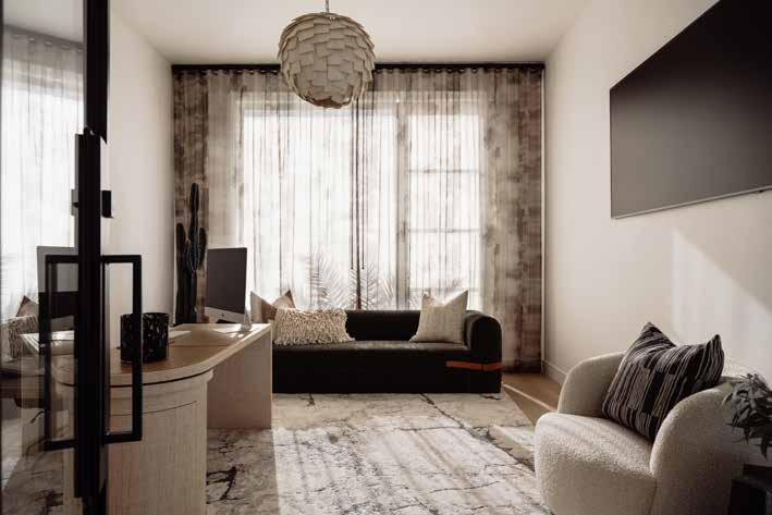 Designed as a counterpoint to the openness of the main living area, the lounge is a cocoon, both peaceful, layered, and deeply versatile. It’s a place for reading, movie nights and slow mornings. Rich tones and varied textures do the heavy lifting here, creating depth without heaviness. Soft lighting and custom upholstery make the room feel both intentional and effortless.