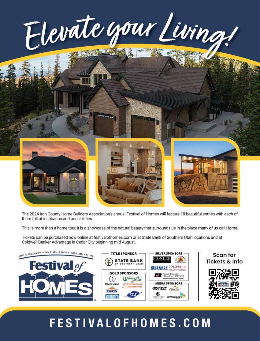 The annual Festival of Homes is presented by Iron County Home Builders Association and State Bank of Southern Utah. Tickets may be purchased online through festivalofhomes.com or at State Bank of Southern Utah locations. Additionally, tickets may be obtained at Coldwell Banker Advantage at 26 N. Main St., Cedar City.