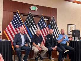 1: St. George Area Chamber of Commerce President and CEO, Shawn Christensen, at Salute to America 2: Salute to America recognition of Washington County Sheriffs Department, police chiefs and officers 3: Washington City Council Member, Kurt Ivie, moderates panel consisting of police chiefs from Washington County