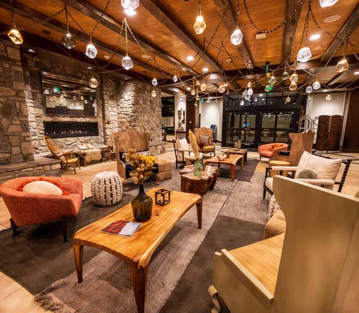 In the guest-suites, handmade area maps created by a local artist highlight points of interest. Locally curated art—including silhouettes of those who built or worked at the hotel in its earliest days—accents each room, while craftsman furniture and vivid tapestries resembling the handmade rugs used by Utah’s original settlers combine to provide world-class, yet cozy accommodations.