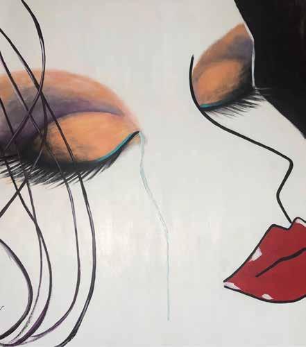 My favorite painting is Camille from my Aspects series. It is a series of paintings that I created to express women’s emotions, struggles and abuse. I am from Brazil and unfortunately, my country has one of the highest femicide rates in the world. The underlying causes are discrimination, inequality and a male-possessive culture. Camille has tears in her eyes to represent all the suffering women have had to go through in life. Describing her like this is not a happy piece but when you contemplate her face and you do not know what was the inspiration, you might have a different feeling about this piece.