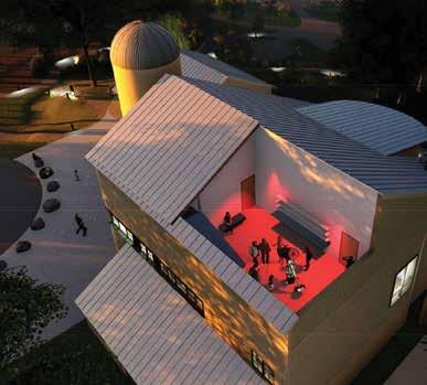 A 100-seat planetarium theatre a roll-back roof observation deck with lunar and solar telescopes state-of-the-art science technology a welcoming lobby gallery … scenic outdoor terraces two school and community program classrooms an elevator and ADA compliant facilities astronomy and technology offices all accessed by a walk in the woods.