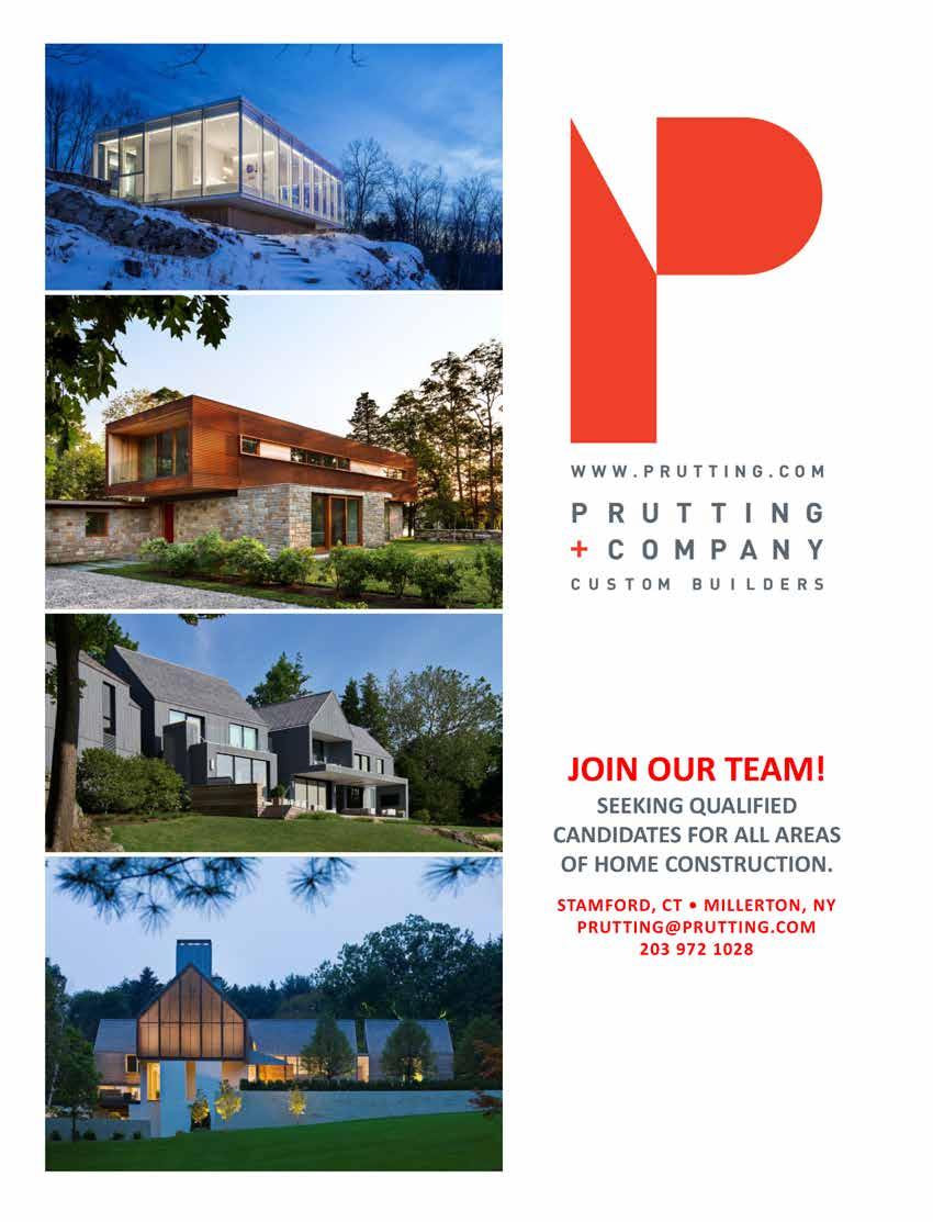 Since 1975, Stamford-based Prutting + Co. Custom Builders has been respected for thoughtful attention to design intent, meticulous craftsmanship, and thorough personal service. Founder and CEO Dave Prutting and his very talented team approach every project as a collaboration - balancing architectural integrity with the realities and availabilities of modern building technologies. Dave and his team work closely with architects to help them achieve the full potential of their plans. Prutting’s portfolio, ranging from award-winning contemporary homes to historic restorations, reflects strong partnerships and rigorous attention to detail. Their goal, in collaboration with the architect, is to create a seamless transition for the client from design through construction. The result is homes that are well-built and work well and often make architectural statements.