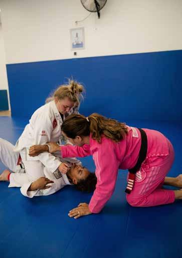 is a great stress relief,” Fabiana says. “People come from work, they train for an hour, and they leave the stress on the mats.” The benefits extend beyond the class itself. As familiarity grows, so does comfort in the space. Students frequently develop friendships that continue outside the gym. For women balancing professional responsibilities, caregiving and family life, the class can offer a rare opportunity to focus fully on personal growth.