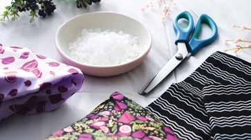 02. CUT FABRIC into desired shapes. Using pinking shears so the fabric doesn’t fray, you can cut your fabric into any shape or size you’d like. Consider what size or shape of food you store the most and use that as a guide.