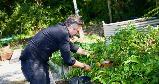 Picking peppers at his home garden