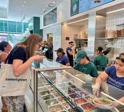 1: Dave Hopkins, Area Coach (Chicago-West suburbs) and Rubi Morales, Team Coach, Sweetgreen Deer Park. 2: Sweetgreen occupies this easily-accessible corner of Deer Park Town Center’s main Rand Road entrance. 3: Multiple Chambers of Commerce joined the ribbon-cutting, including Barrington and Lake Zurich. 4: A variety of fresh, nutritious ingredients are included in Sweetgreen’s highly-customizable daily menu. 5: Service at the grand opening event was prompt, friendly and efficient. 6: Hundreds of fresh flowers were crafted into individual bouquets and given to opening-day customers. 7: Sweetgreen’s Core Values are prominently posted, elevating customer and service staff awareness.