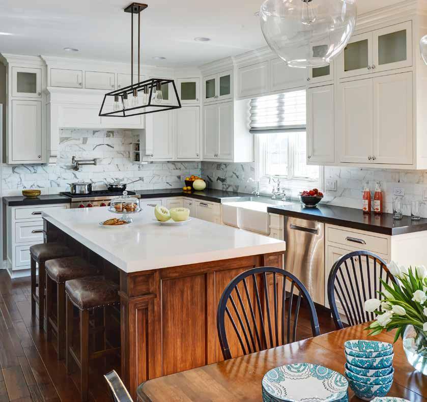 In one of the comprehensive first floor remodels I’ve designed and managed, the changes were centered around a stunning kitchen overhaul. The design sought to integrate spaces for cooking, dining, and living while reinventing the heart of the home. This approach simultaneously enhanced the visual appeal and functionality of the first floor of the client’s home while fostering a more interactive and social environment, which perfectly aligned with a busy family lifestyle.