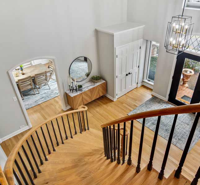 Past the front door is a grand marble foyer with curved bridal staircase that welcomes family and friends into the home. Inside there are four bedrooms, 3.1 baths, a fully finished basement, and large kitchen with granite counters, newer stainless-steel appliances & under-cabinet lighting.