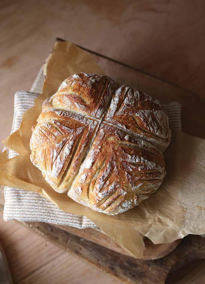 Preheat the oven to 450°F. Score the top of dough with a sharp knife. Use the parchment paper to lift the dough up and transfer to a dutch oven. Place the lid on and bake for 20 minutes. Remove the lid and bake for an additional 30 minutes or until golden brown.