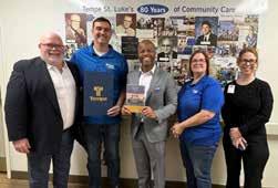 1: Mayor Corey Woods reading the proclamation celebrating Tempe St. Luke’s with Shelia Bryant and Cliff Jones. 2: Michael Neely, Jason Hood, Mayor Corey Woods, Sue Bentz, and Katherine Schneider celebrating Tempe St. Luke’s Hospital’s 80th Anniversary. 3: Paulette Pacioni and Colin Diaz with the Tempe Chamber and Harvey Gibson with Landings Credit Union. 4: Feeney/winthrop performed at the 16th Annual feeney/ winthrop Benefit Concert at Tempe Center for the Arts. 5: Melissa Forrester wth husband Jack and David Key at the Tempe Chamber mixer.